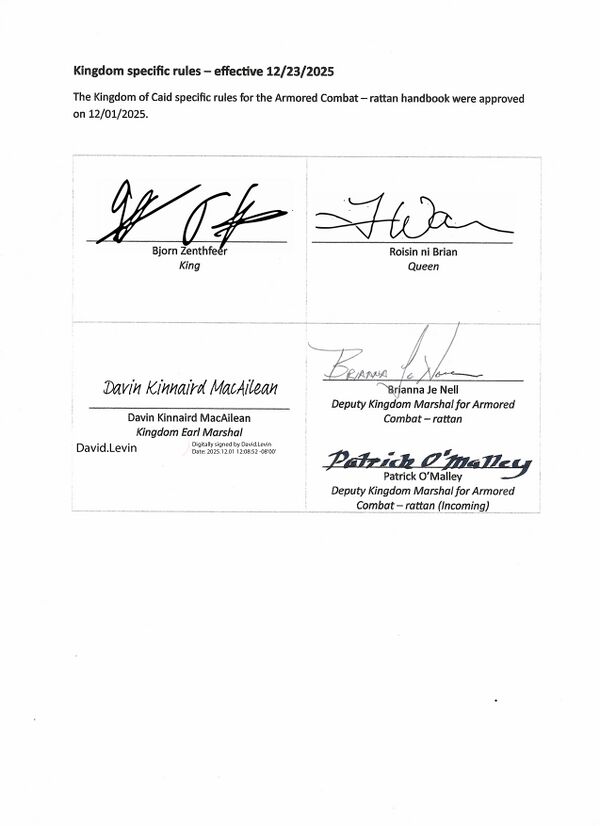 Kingdom Armored Combat Marshal: Brianna Je Nell Aislynn of Blue Shadows, OL, and Duke Patrick O'Malley (incoming)